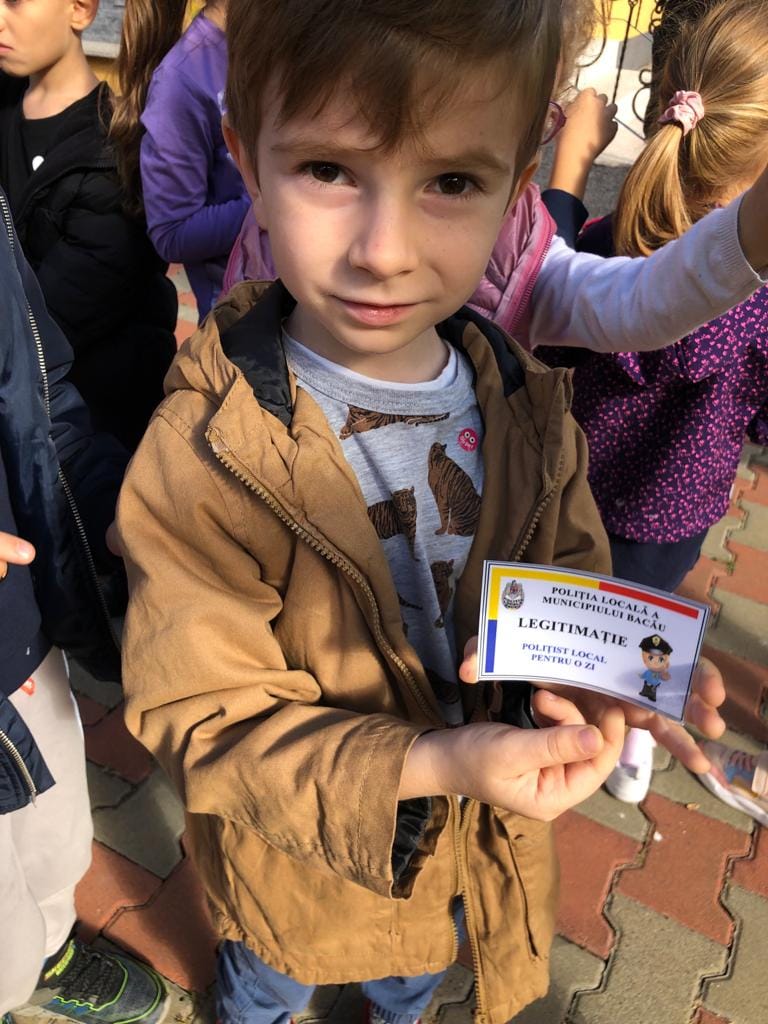 Au avut ocazia sa descopere o parte din tainele meseriei de politist, fiind chiar ei politisti pentru o zi, cu ajutorul legitimatiei primite.